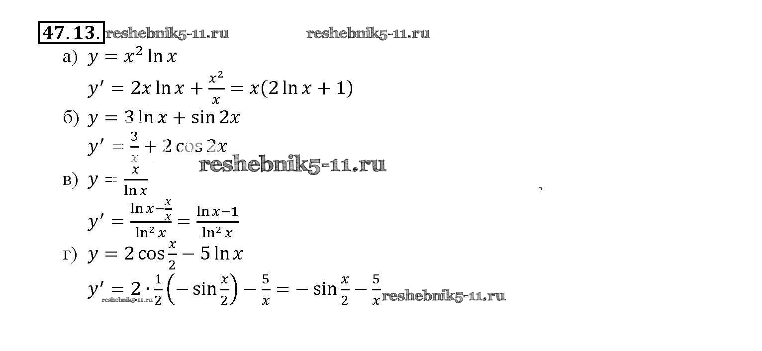 Готовая домашняя работа с ответами по Алгебре за 10, 11 класс Мордкович, Денищева, Корешкова, Мишустина, Семёнов, Тульчинская Задачник Базовый уровень Часть 2 Мнемозина 2015 ФГОС - §47. Дифференцирование показательной и логарифмической функций 47. 13