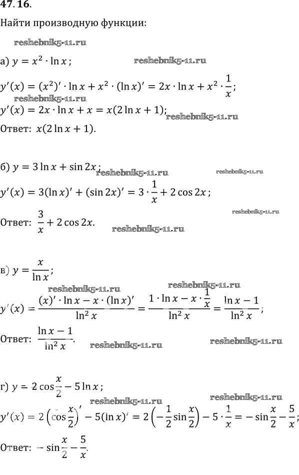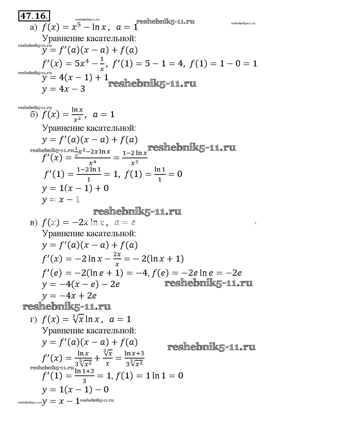 Готовая домашняя работа с ответами по Алгебре за 10, 11 класс Мордкович, Денищева, Корешкова, Мишустина, Семёнов, Тульчинская Задачник Базовый уровень Часть 2 Мнемозина 2015 ФГОС - §47. Дифференцирование показательной и логарифмической функций 47. 16