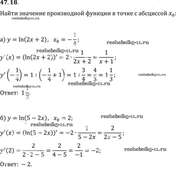 Готовая домашняя работа с ответами по Алгебре за 10, 11 класс Мордкович, Денищева, Корешкова, Мишустина, Семёнов, Тульчинская Задачник Базовый уровень Часть 2 Мнемозина 2015 ФГОС - §47. Дифференцирование показательной и логарифмической функций 47. 18