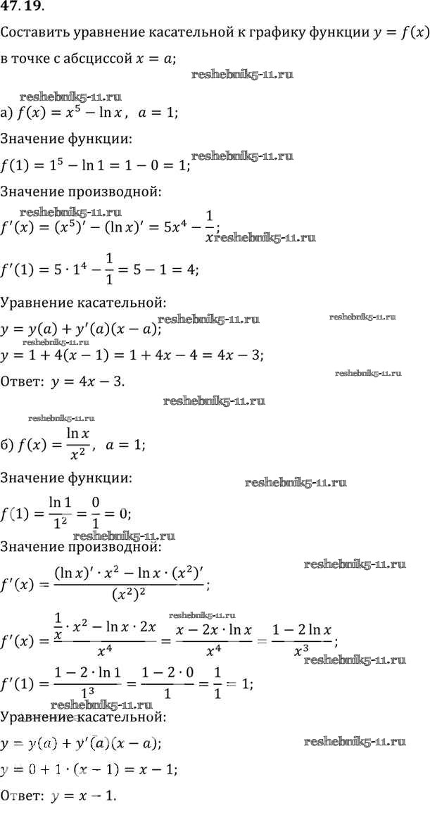 Готовая домашняя работа с ответами по Алгебре за 10, 11 класс Мордкович, Денищева, Корешкова, Мишустина, Семёнов, Тульчинская Задачник Базовый уровень Часть 2 Мнемозина 2015 ФГОС - §47. Дифференцирование показательной и логарифмической функций 47. 19