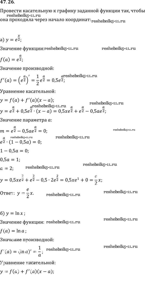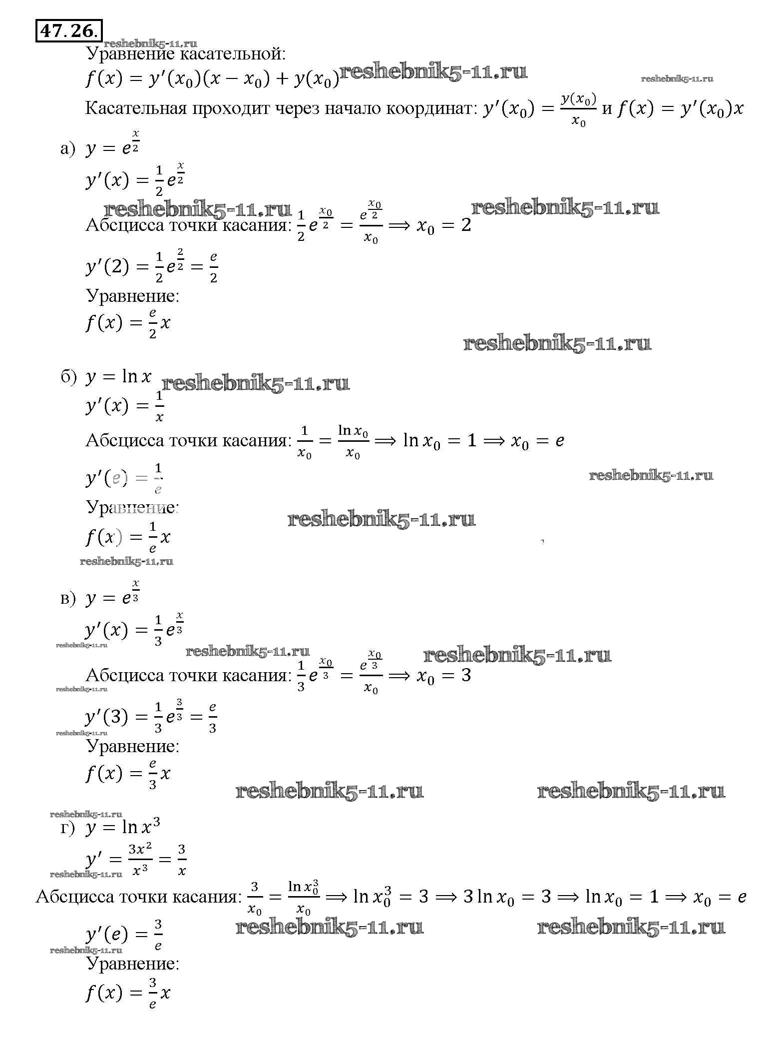 Готовая домашняя работа с ответами по Алгебре за 10, 11 класс Мордкович, Денищева, Корешкова, Мишустина, Семёнов, Тульчинская Задачник Базовый уровень Часть 2 Мнемозина 2015 ФГОС - §47. Дифференцирование показательной и логарифмической функций 47. 26