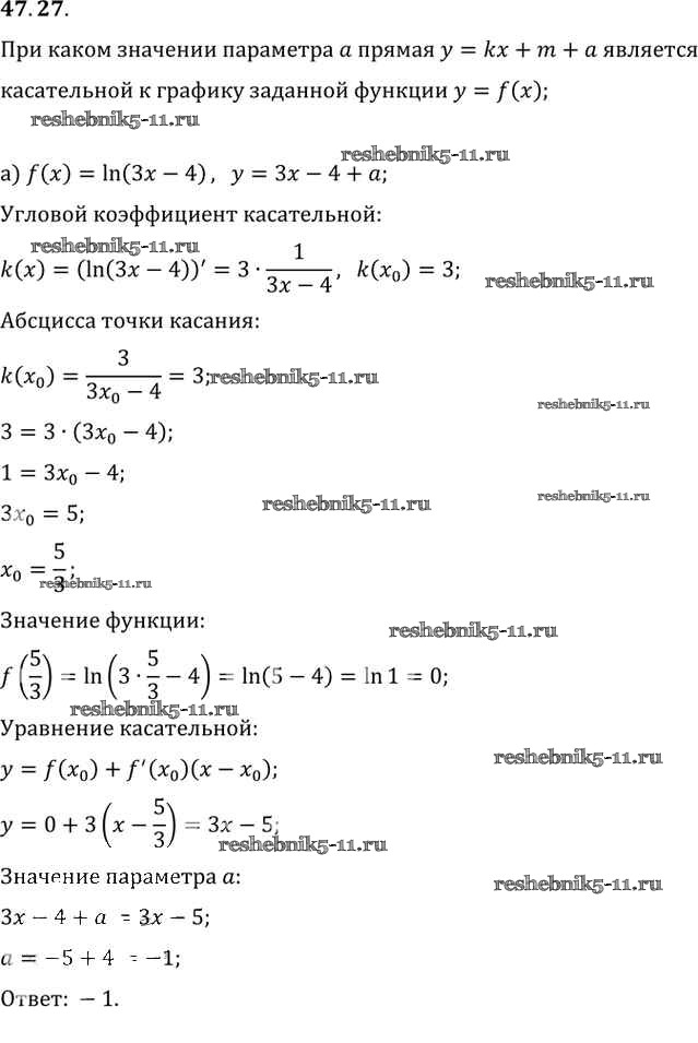 Готовая домашняя работа с ответами по Алгебре за 10, 11 класс Мордкович, Денищева, Корешкова, Мишустина, Семёнов, Тульчинская Задачник Базовый уровень Часть 2 Мнемозина 2015 ФГОС - §47. Дифференцирование показательной и логарифмической функций 47. 27