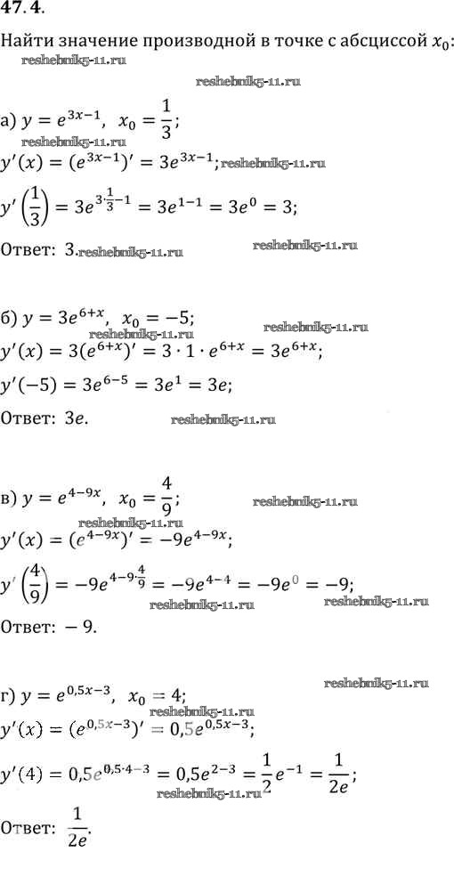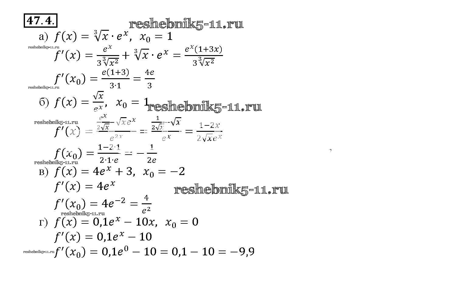 Готовая домашняя работа с ответами по Алгебре за 10, 11 класс Мордкович, Денищева, Корешкова, Мишустина, Семёнов, Тульчинская Задачник Базовый уровень Часть 2 Мнемозина 2015 ФГОС - §47. Дифференцирование показательной и логарифмической функций 47. 4