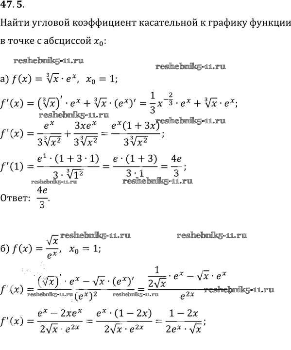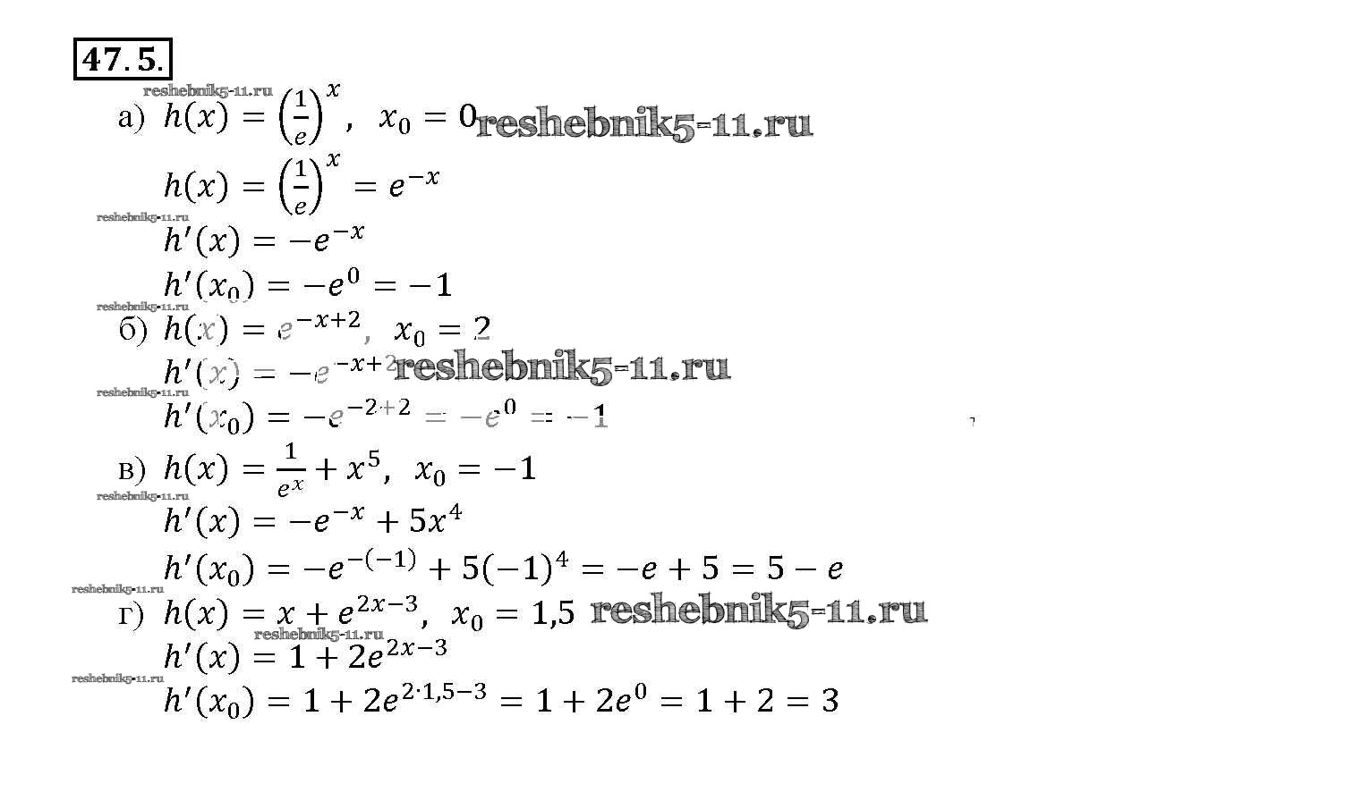 Готовая домашняя работа с ответами по Алгебре за 10, 11 класс Мордкович, Денищева, Корешкова, Мишустина, Семёнов, Тульчинская Задачник Базовый уровень Часть 2 Мнемозина 2015 ФГОС - §47. Дифференцирование показательной и логарифмической функций 47. 5