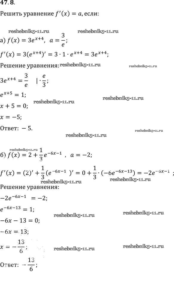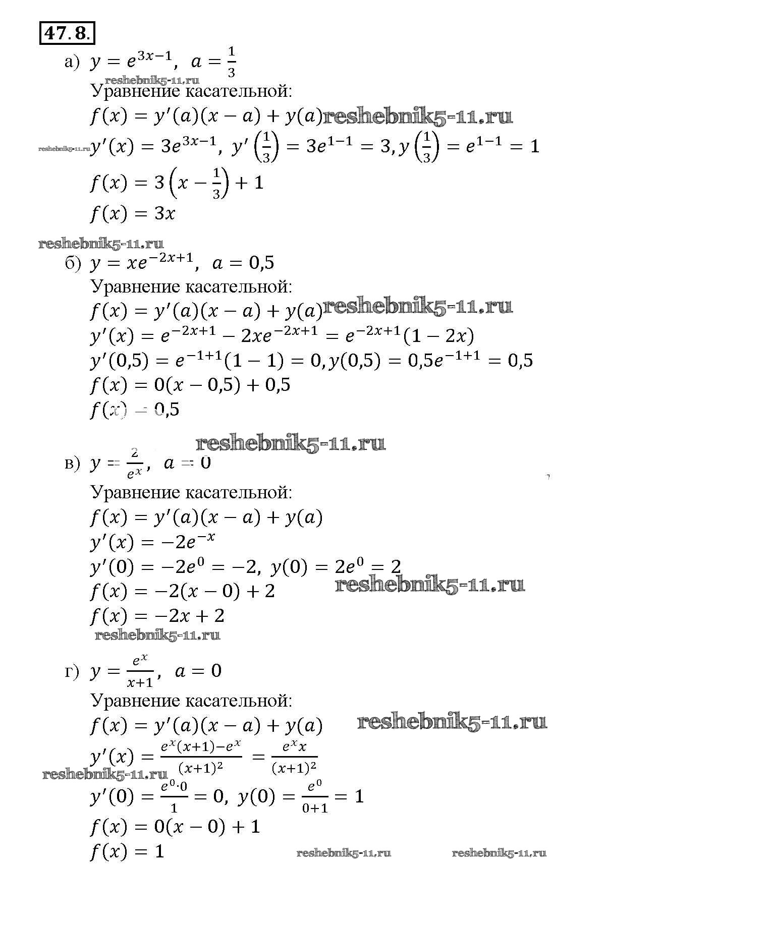 Готовая домашняя работа с ответами по Алгебре за 10, 11 класс Мордкович, Денищева, Корешкова, Мишустина, Семёнов, Тульчинская Задачник Базовый уровень Часть 2 Мнемозина 2015 ФГОС - §47. Дифференцирование показательной и логарифмической функций 47. 8