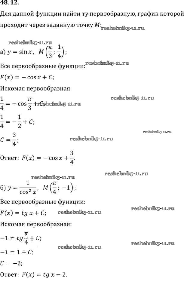 Готовая домашняя работа с ответами по Алгебре за 10, 11 класс Мордкович, Денищева, Корешкова, Мишустина, Семёнов, Тульчинская Задачник Базовый уровень Часть 2 Мнемозина 2015 ФГОС - §48. Первообразная 48. 12