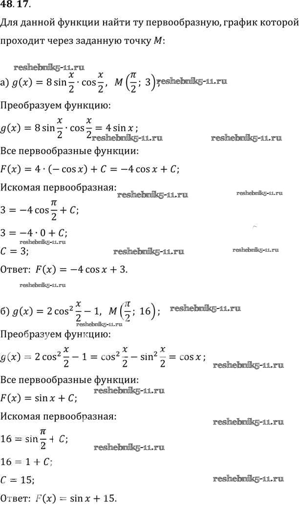 Готовая домашняя работа с ответами по Алгебре за 10, 11 класс Мордкович, Денищева, Корешкова, Мишустина, Семёнов, Тульчинская Задачник Базовый уровень Часть 2 Мнемозина 2015 ФГОС - §48. Первообразная 48. 17
