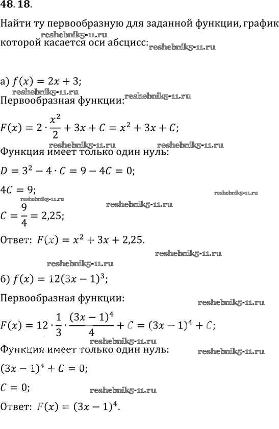 Готовая домашняя работа с ответами по Алгебре за 10, 11 класс Мордкович, Денищева, Корешкова, Мишустина, Семёнов, Тульчинская Задачник Базовый уровень Часть 2 Мнемозина 2015 ФГОС - §48. Первообразная 48. 18