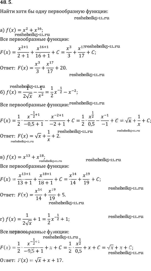 Готовая домашняя работа с ответами по Алгебре за 10, 11 класс Мордкович, Денищева, Корешкова, Мишустина, Семёнов, Тульчинская Задачник Базовый уровень Часть 2 Мнемозина 2015 ФГОС - §48. Первообразная 48. 5