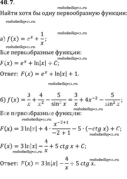 Готовая домашняя работа с ответами по Алгебре за 10, 11 класс Мордкович, Денищева, Корешкова, Мишустина, Семёнов, Тульчинская Задачник Базовый уровень Часть 2 Мнемозина 2015 ФГОС - §48. Первообразная 48. 7