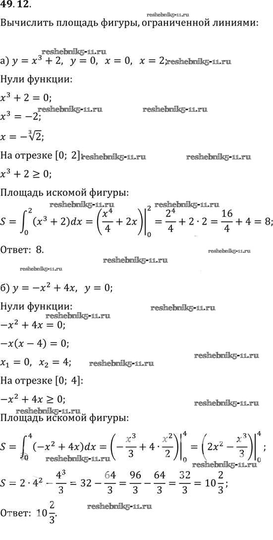 Готовая домашняя работа с ответами по Алгебре за 10, 11 класс Мордкович, Денищева, Корешкова, Мишустина, Семёнов, Тульчинская Задачник Базовый уровень Часть 2 Мнемозина 2015 ФГОС - §49. Определенный интеграл 49. 12