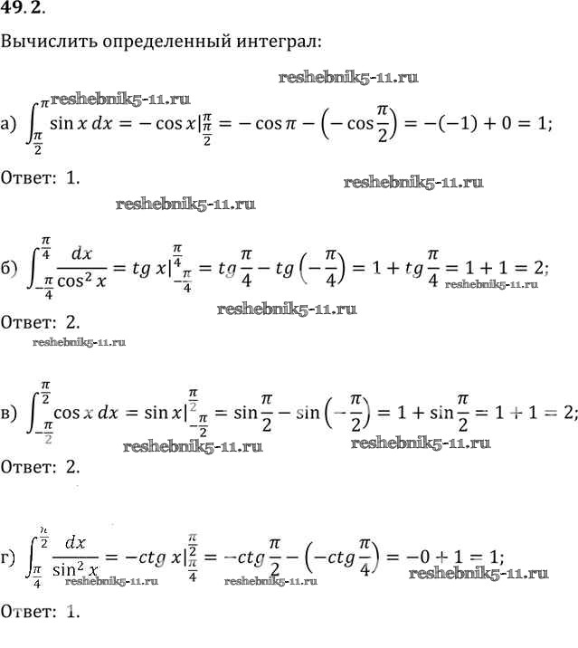 Готовая домашняя работа с ответами по Алгебре за 10, 11 класс Мордкович, Денищева, Корешкова, Мишустина, Семёнов, Тульчинская Задачник Базовый уровень Часть 2 Мнемозина 2015 ФГОС - §49. Определенный интеграл 49. 2