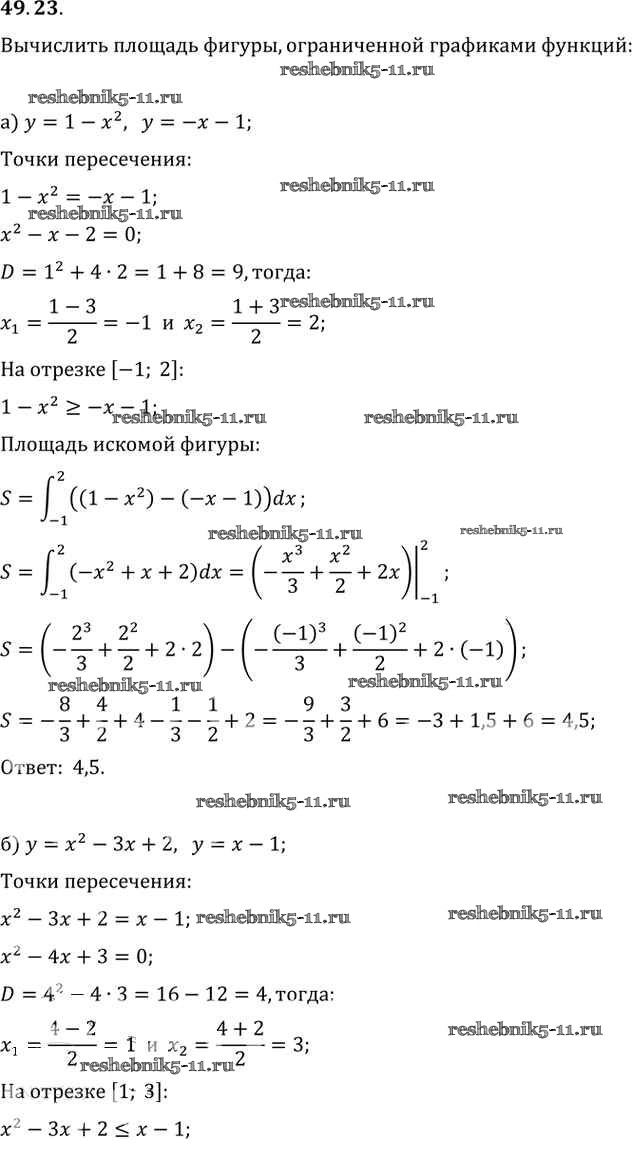 Готовая домашняя работа с ответами по Алгебре за 10, 11 класс Мордкович, Денищева, Корешкова, Мишустина, Семёнов, Тульчинская Задачник Базовый уровень Часть 2 Мнемозина 2015 ФГОС - §49. Определенный интеграл 49. 23