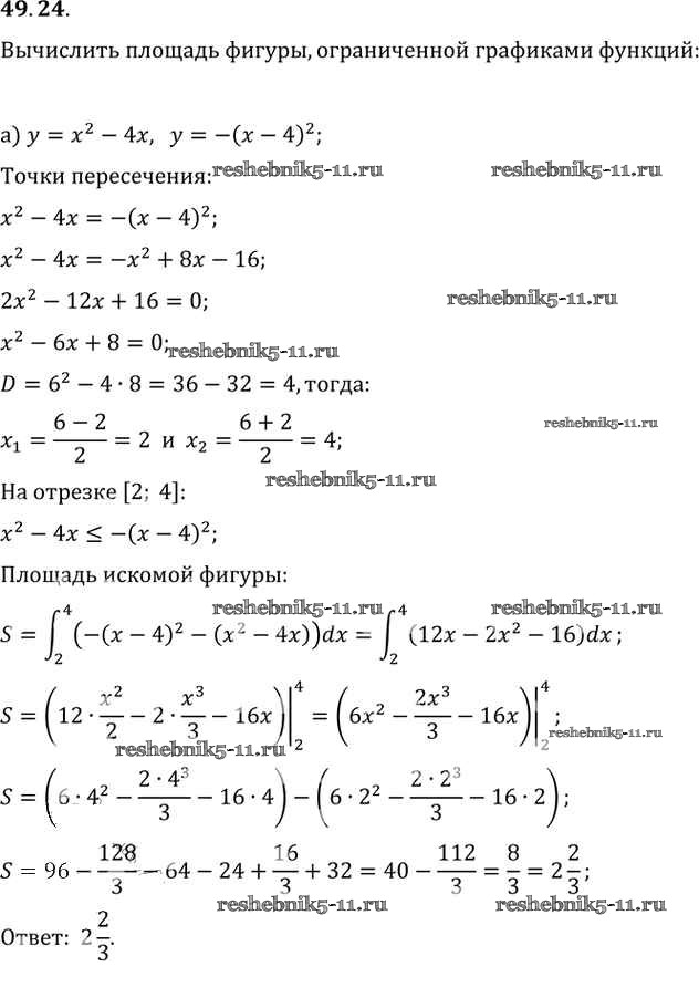 Готовая домашняя работа с ответами по Алгебре за 10, 11 класс Мордкович, Денищева, Корешкова, Мишустина, Семёнов, Тульчинская Задачник Базовый уровень Часть 2 Мнемозина 2015 ФГОС - §49. Определенный интеграл 49. 24