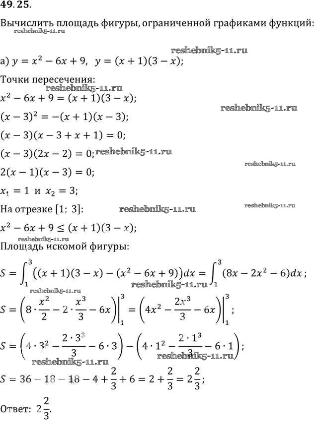 Готовая домашняя работа с ответами по Алгебре за 10, 11 класс Мордкович, Денищева, Корешкова, Мишустина, Семёнов, Тульчинская Задачник Базовый уровень Часть 2 Мнемозина 2015 ФГОС - §49. Определенный интеграл 49. 25