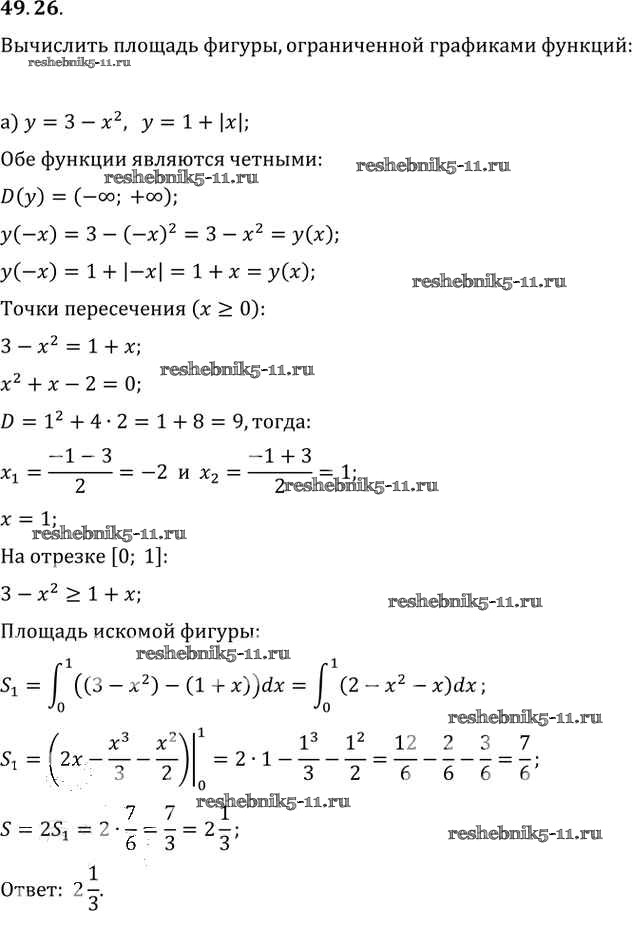 Готовая домашняя работа с ответами по Алгебре за 10, 11 класс Мордкович, Денищева, Корешкова, Мишустина, Семёнов, Тульчинская Задачник Базовый уровень Часть 2 Мнемозина 2015 ФГОС - §49. Определенный интеграл 49. 26