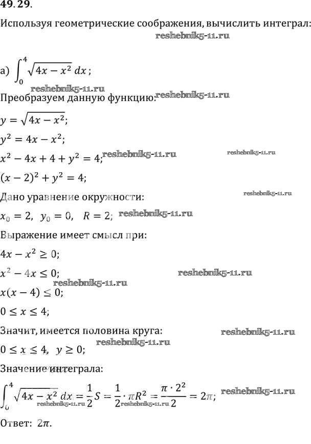 Готовая домашняя работа с ответами по Алгебре за 10, 11 класс Мордкович, Денищева, Корешкова, Мишустина, Семёнов, Тульчинская Задачник Базовый уровень Часть 2 Мнемозина 2015 ФГОС - §49. Определенный интеграл 49. 29