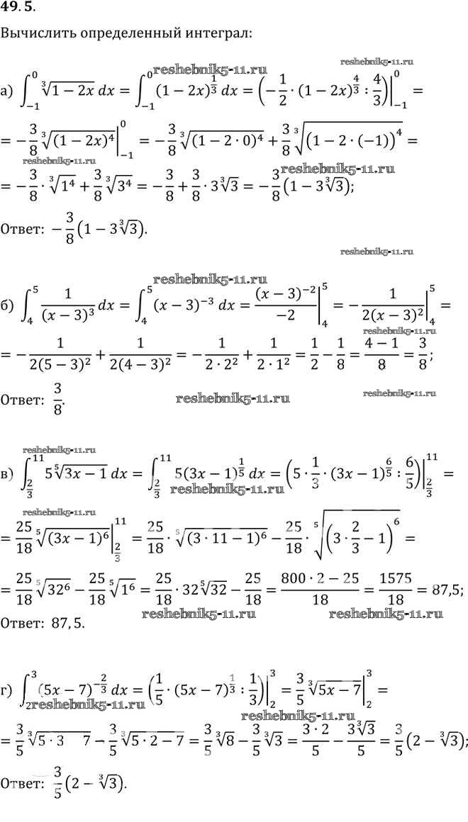 Готовая домашняя работа с ответами по Алгебре за 10, 11 класс Мордкович, Денищева, Корешкова, Мишустина, Семёнов, Тульчинская Задачник Базовый уровень Часть 2 Мнемозина 2015 ФГОС - §49. Определенный интеграл 49. 5