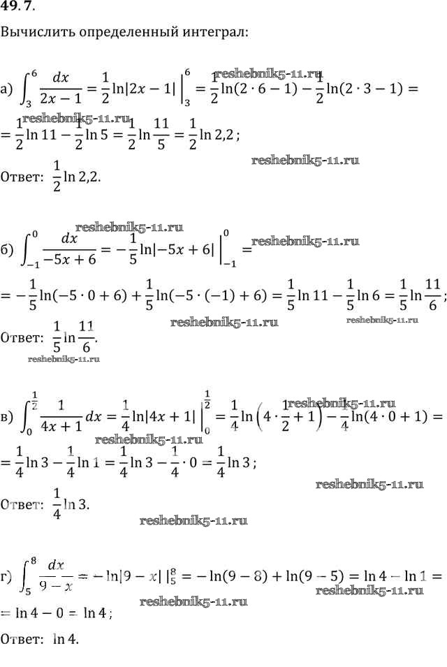 Готовая домашняя работа с ответами по Алгебре за 10, 11 класс Мордкович, Денищева, Корешкова, Мишустина, Семёнов, Тульчинская Задачник Базовый уровень Часть 2 Мнемозина 2015 ФГОС - §49. Определенный интеграл 49. 7