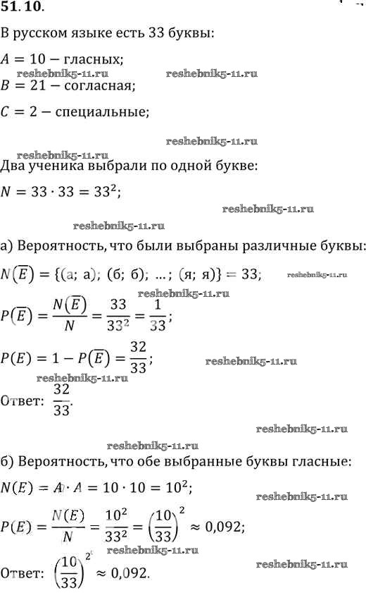 Готовая домашняя работа с ответами по Алгебре за 10, 11 класс Мордкович, Денищева, Корешкова, Мишустина, Семёнов, Тульчинская Задачник Базовый уровень Часть 2 Мнемозина 2015 ФГОС - §51. Простейшие вероятностные задачи 51. 10
