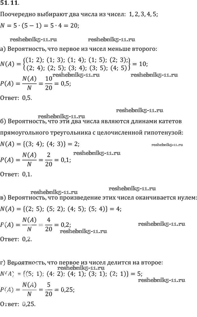 Готовая домашняя работа с ответами по Алгебре за 10, 11 класс Мордкович, Денищева, Корешкова, Мишустина, Семёнов, Тульчинская Задачник Базовый уровень Часть 2 Мнемозина 2015 ФГОС - §51. Простейшие вероятностные задачи 51. 11