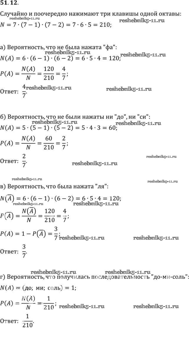 Готовая домашняя работа с ответами по Алгебре за 10, 11 класс Мордкович, Денищева, Корешкова, Мишустина, Семёнов, Тульчинская Задачник Базовый уровень Часть 2 Мнемозина 2015 ФГОС - §51. Простейшие вероятностные задачи 51. 12