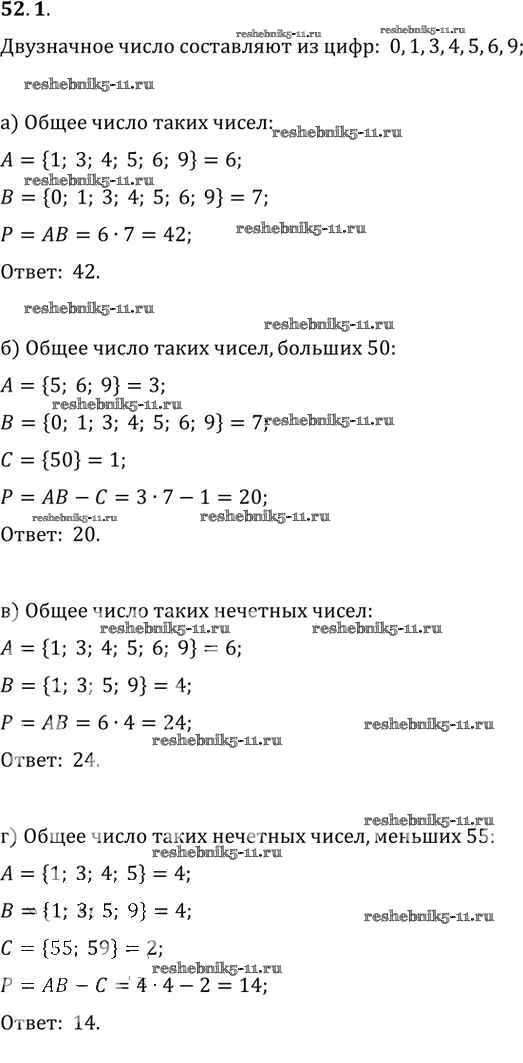 Готовая домашняя работа с ответами по Алгебре за 10, 11 класс Мордкович, Денищева, Корешкова, Мишустина, Семёнов, Тульчинская Задачник Базовый уровень Часть 2 Мнемозина 2015 ФГОС - §52. Сочетания и размещения 52. 1