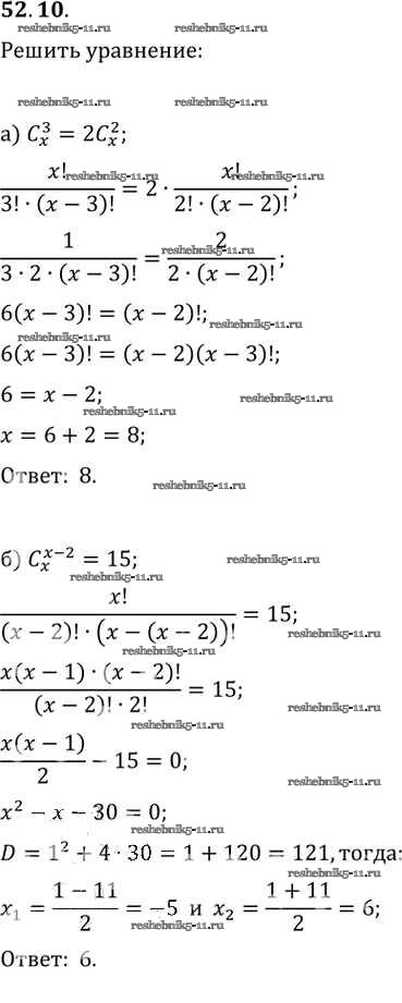 Готовая домашняя работа с ответами по Алгебре за 10, 11 класс Мордкович, Денищева, Корешкова, Мишустина, Семёнов, Тульчинская Задачник Базовый уровень Часть 2 Мнемозина 2015 ФГОС - §52. Сочетания и размещения 52. 10