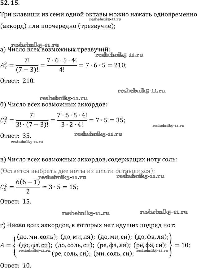 Готовая домашняя работа с ответами по Алгебре за 10, 11 класс Мордкович, Денищева, Корешкова, Мишустина, Семёнов, Тульчинская Задачник Базовый уровень Часть 2 Мнемозина 2015 ФГОС - §52. Сочетания и размещения 52. 15