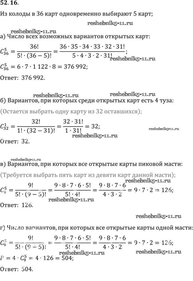 Готовая домашняя работа с ответами по Алгебре за 10, 11 класс Мордкович, Денищева, Корешкова, Мишустина, Семёнов, Тульчинская Задачник Базовый уровень Часть 2 Мнемозина 2015 ФГОС - §52. Сочетания и размещения 52. 16