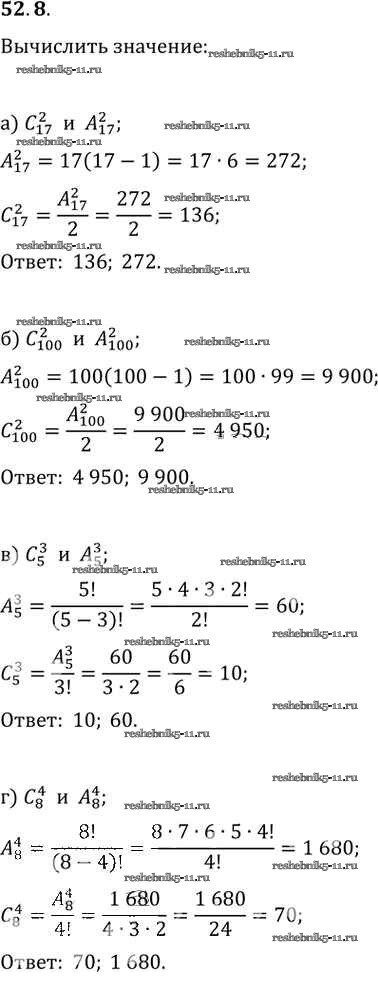Готовая домашняя работа с ответами по Алгебре за 10, 11 класс Мордкович, Денищева, Корешкова, Мишустина, Семёнов, Тульчинская Задачник Базовый уровень Часть 2 Мнемозина 2015 ФГОС - §52. Сочетания и размещения 52. 8