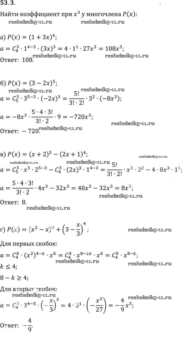 Готовая домашняя работа с ответами по Алгебре за 10, 11 класс Мордкович, Денищева, Корешкова, Мишустина, Семёнов, Тульчинская Задачник Базовый уровень Часть 2 Мнемозина 2015 ФГОС - §53. Формула бинома Ньютона 53. 3