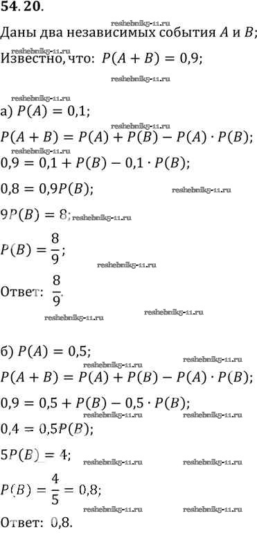 Готовая домашняя работа с ответами по Алгебре за 10, 11 класс Мордкович, Денищева, Корешкова, Мишустина, Семёнов, Тульчинская Задачник Базовый уровень Часть 2 Мнемозина 2015 ФГОС - §54. Случайные события и их вероятности 54. 20
