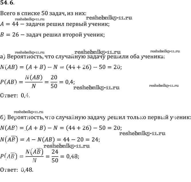Готовая домашняя работа с ответами по Алгебре за 10, 11 класс Мордкович, Денищева, Корешкова, Мишустина, Семёнов, Тульчинская Задачник Базовый уровень Часть 2 Мнемозина 2015 ФГОС - §54. Случайные события и их вероятности 54. 6