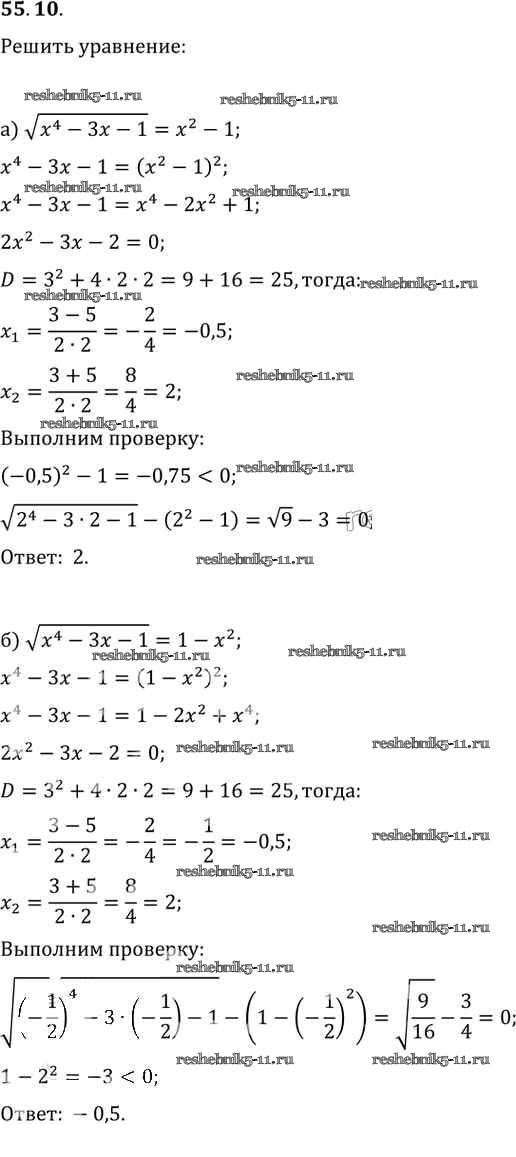 Готовая домашняя работа с ответами по Алгебре за 10, 11 класс Мордкович, Денищева, Корешкова, Мишустина, Семёнов, Тульчинская Задачник Базовый уровень Часть 2 Мнемозина 2015 ФГОС - §55. Равносильность уравнений 55. 10