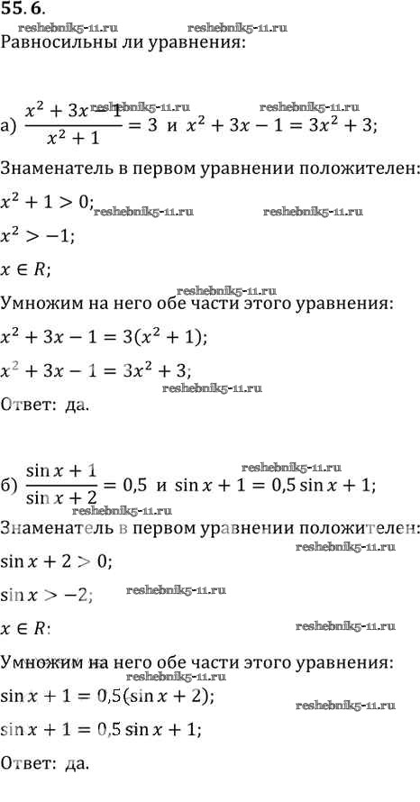 Готовая домашняя работа с ответами по Алгебре за 10, 11 класс Мордкович, Денищева, Корешкова, Мишустина, Семёнов, Тульчинская Задачник Базовый уровень Часть 2 Мнемозина 2015 ФГОС - §55. Равносильность уравнений 55. 6