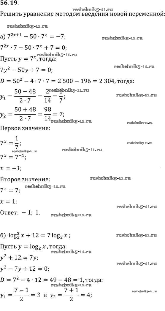 Готовая домашняя работа с ответами по Алгебре за 10, 11 класс Мордкович, Денищева, Корешкова, Мишустина, Семёнов, Тульчинская Задачник Базовый уровень Часть 2 Мнемозина 2015 ФГОС - §56. Общие методы решения уравнений 56. 19
