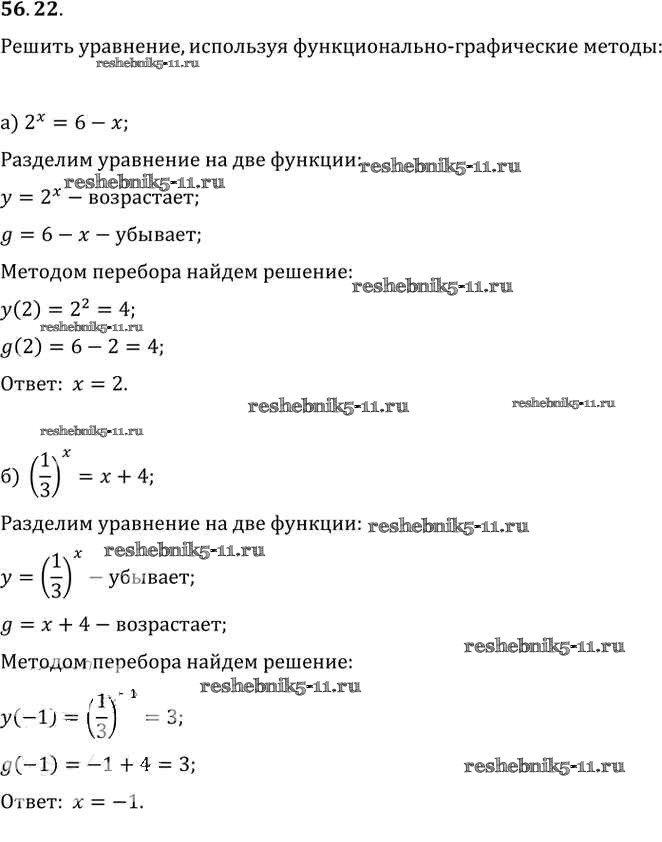 Готовая домашняя работа с ответами по Алгебре за 10, 11 класс Мордкович, Денищева, Корешкова, Мишустина, Семёнов, Тульчинская Задачник Базовый уровень Часть 2 Мнемозина 2015 ФГОС - §56. Общие методы решения уравнений 56. 22