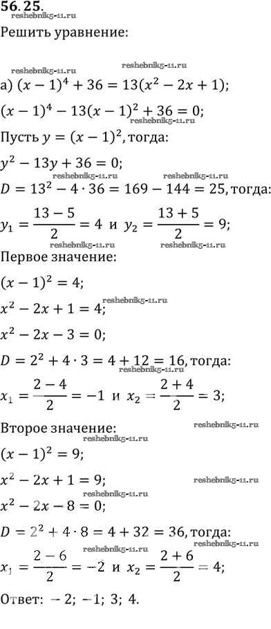 Готовая домашняя работа с ответами по Алгебре за 10, 11 класс Мордкович, Денищева, Корешкова, Мишустина, Семёнов, Тульчинская Задачник Базовый уровень Часть 2 Мнемозина 2015 ФГОС - §56. Общие методы решения уравнений 56. 25