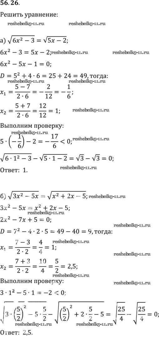 Готовая домашняя работа с ответами по Алгебре за 10, 11 класс Мордкович, Денищева, Корешкова, Мишустина, Семёнов, Тульчинская Задачник Базовый уровень Часть 2 Мнемозина 2015 ФГОС - §56. Общие методы решения уравнений 56. 26