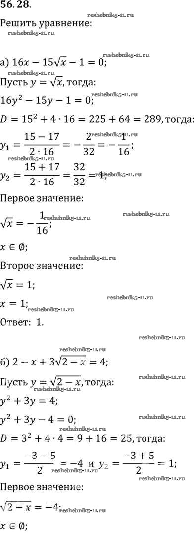 Готовая домашняя работа с ответами по Алгебре за 10, 11 класс Мордкович, Денищева, Корешкова, Мишустина, Семёнов, Тульчинская Задачник Базовый уровень Часть 2 Мнемозина 2015 ФГОС - §56. Общие методы решения уравнений 56. 28