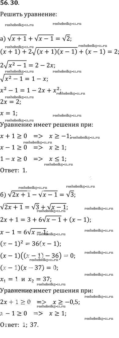 Готовая домашняя работа с ответами по Алгебре за 10, 11 класс Мордкович, Денищева, Корешкова, Мишустина, Семёнов, Тульчинская Задачник Базовый уровень Часть 2 Мнемозина 2015 ФГОС - §56. Общие методы решения уравнений 56. 30