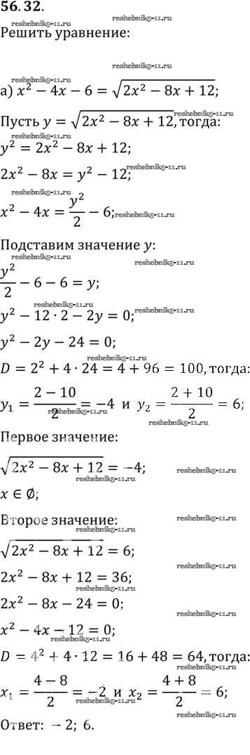Готовая домашняя работа с ответами по Алгебре за 10, 11 класс Мордкович, Денищева, Корешкова, Мишустина, Семёнов, Тульчинская Задачник Базовый уровень Часть 2 Мнемозина 2015 ФГОС - §56. Общие методы решения уравнений 56. 32