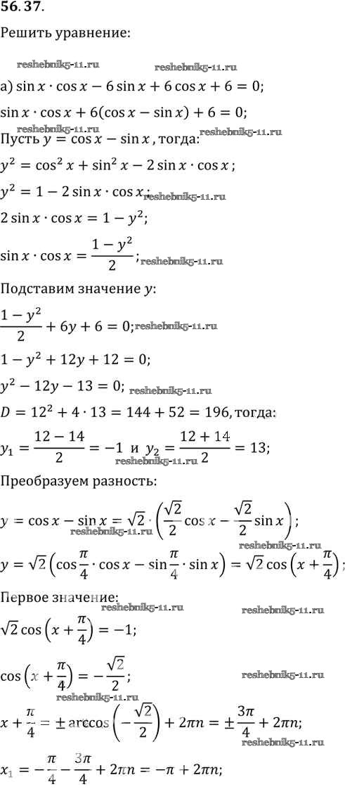 Готовая домашняя работа с ответами по Алгебре за 10, 11 класс Мордкович, Денищева, Корешкова, Мишустина, Семёнов, Тульчинская Задачник Базовый уровень Часть 2 Мнемозина 2015 ФГОС - §56. Общие методы решения уравнений 56. 37
