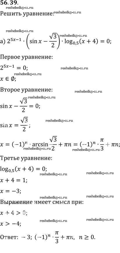 Готовая домашняя работа с ответами по Алгебре за 10, 11 класс Мордкович, Денищева, Корешкова, Мишустина, Семёнов, Тульчинская Задачник Базовый уровень Часть 2 Мнемозина 2015 ФГОС - §56. Общие методы решения уравнений 56. 39