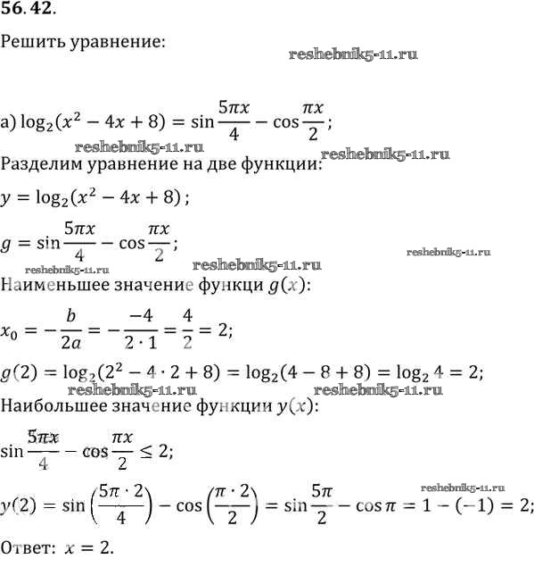 Готовая домашняя работа с ответами по Алгебре за 10, 11 класс Мордкович, Денищева, Корешкова, Мишустина, Семёнов, Тульчинская Задачник Базовый уровень Часть 2 Мнемозина 2015 ФГОС - §56. Общие методы решения уравнений 56. 42