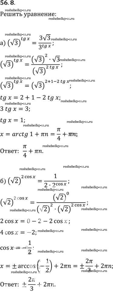 Готовая домашняя работа с ответами по Алгебре за 10, 11 класс Мордкович, Денищева, Корешкова, Мишустина, Семёнов, Тульчинская Задачник Базовый уровень Часть 2 Мнемозина 2015 ФГОС - §56. Общие методы решения уравнений 56. 8