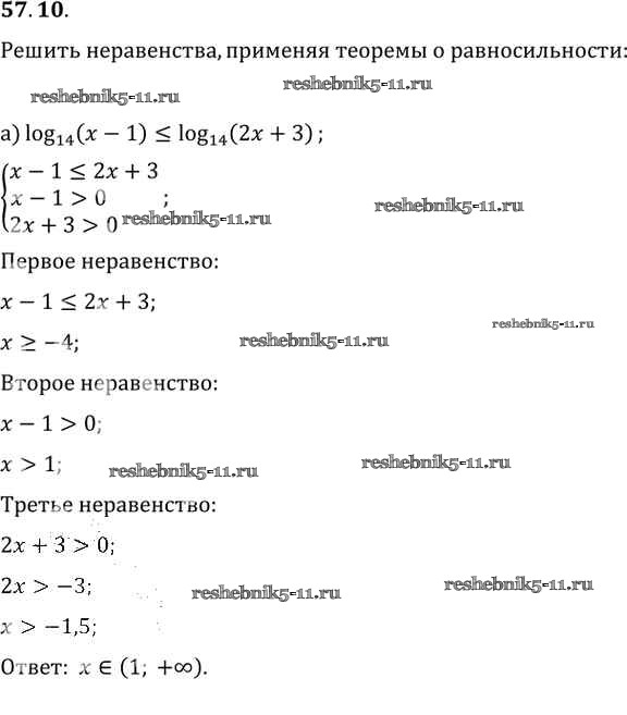 Готовая домашняя работа с ответами по Алгебре за 10, 11 класс Мордкович, Денищева, Корешкова, Мишустина, Семёнов, Тульчинская Задачник Базовый уровень Часть 2 Мнемозина 2015 ФГОС - §57. Решение неравенств с одной переменной 57. 10
