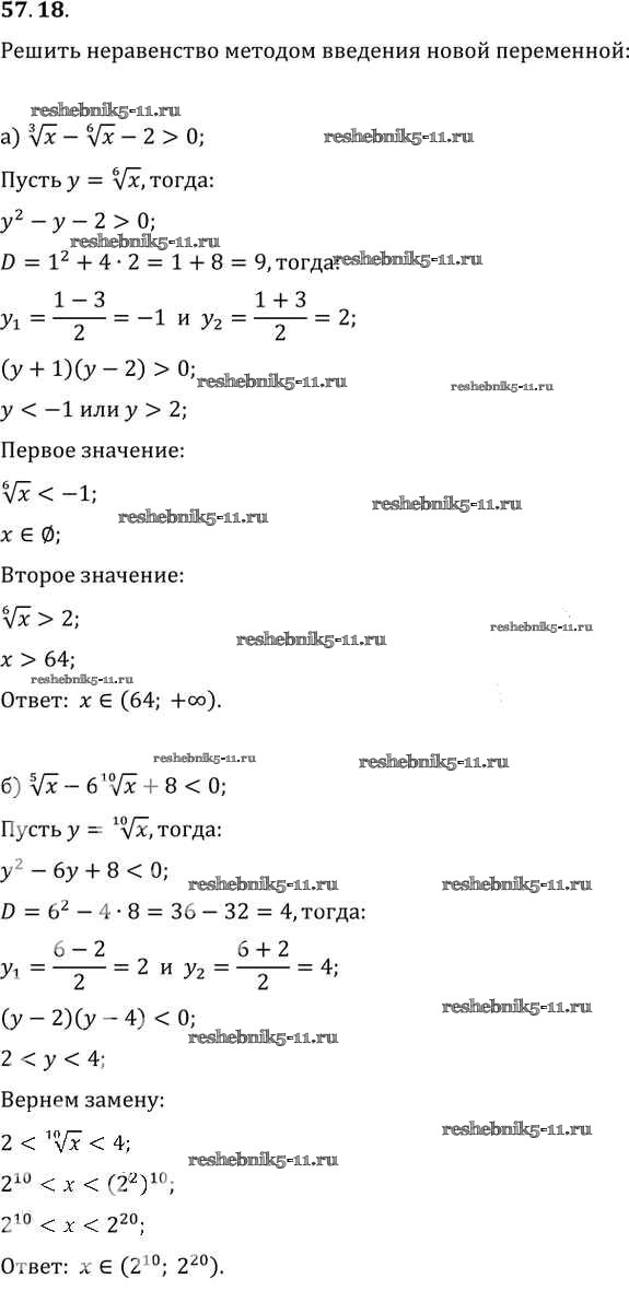 Готовая домашняя работа с ответами по Алгебре за 10, 11 класс Мордкович, Денищева, Корешкова, Мишустина, Семёнов, Тульчинская Задачник Базовый уровень Часть 2 Мнемозина 2015 ФГОС - §57. Решение неравенств с одной переменной 57. 18