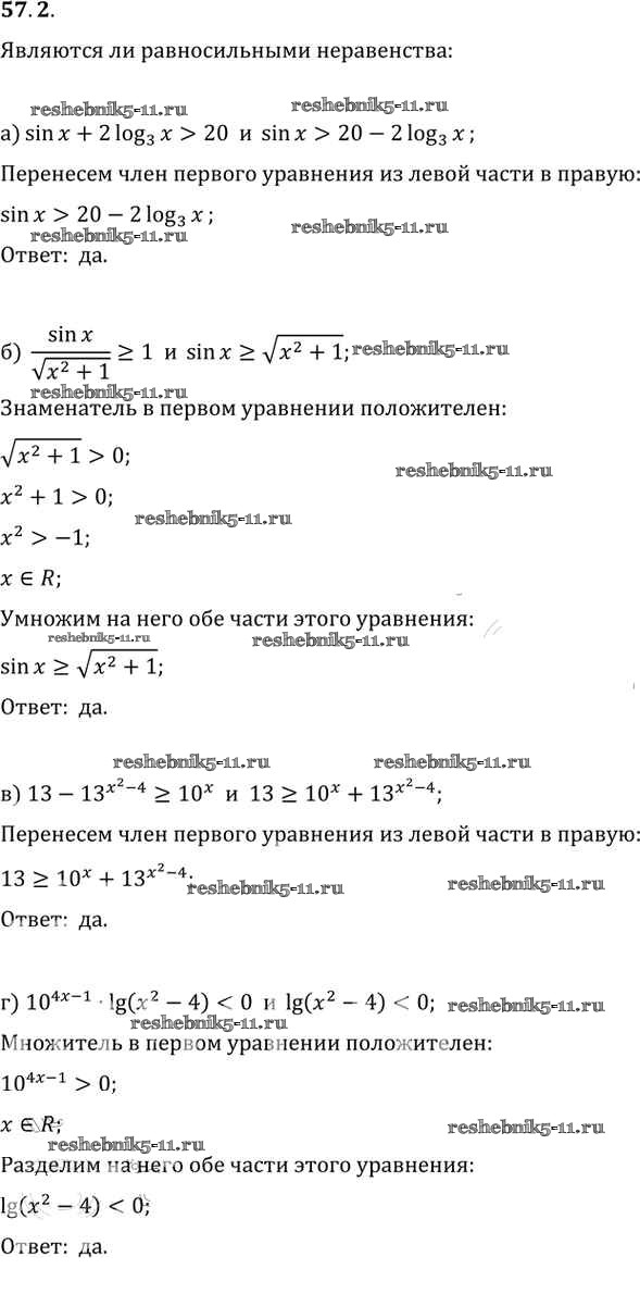 Готовая домашняя работа с ответами по Алгебре за 10, 11 класс Мордкович, Денищева, Корешкова, Мишустина, Семёнов, Тульчинская Задачник Базовый уровень Часть 2 Мнемозина 2015 ФГОС - §57. Решение неравенств с одной переменной 57. 2